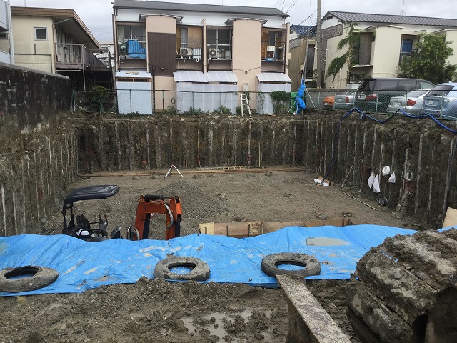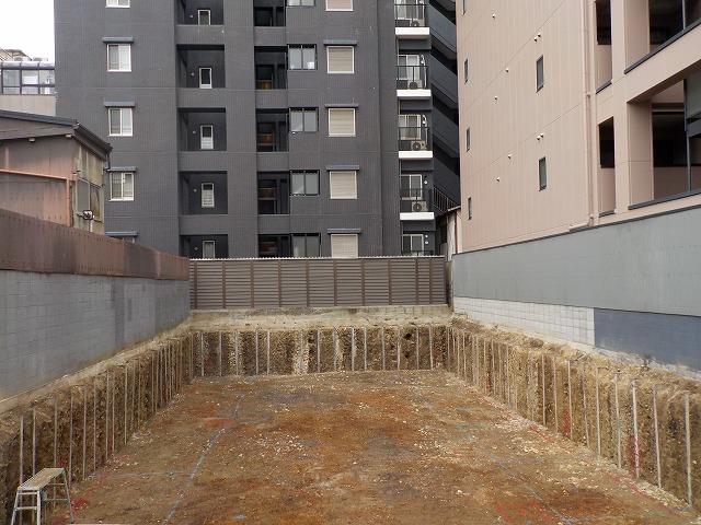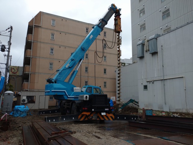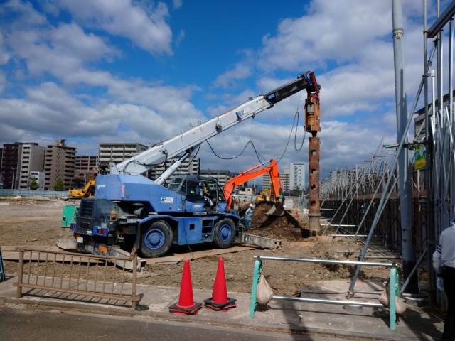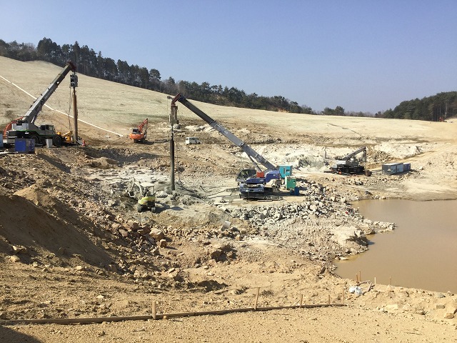 杭打ち・連続壁の作成で、地盤を掘削する際に、地山の崩壊や地下水の流入を防いだり、また汚染の拡散を封じることにも貢献します。